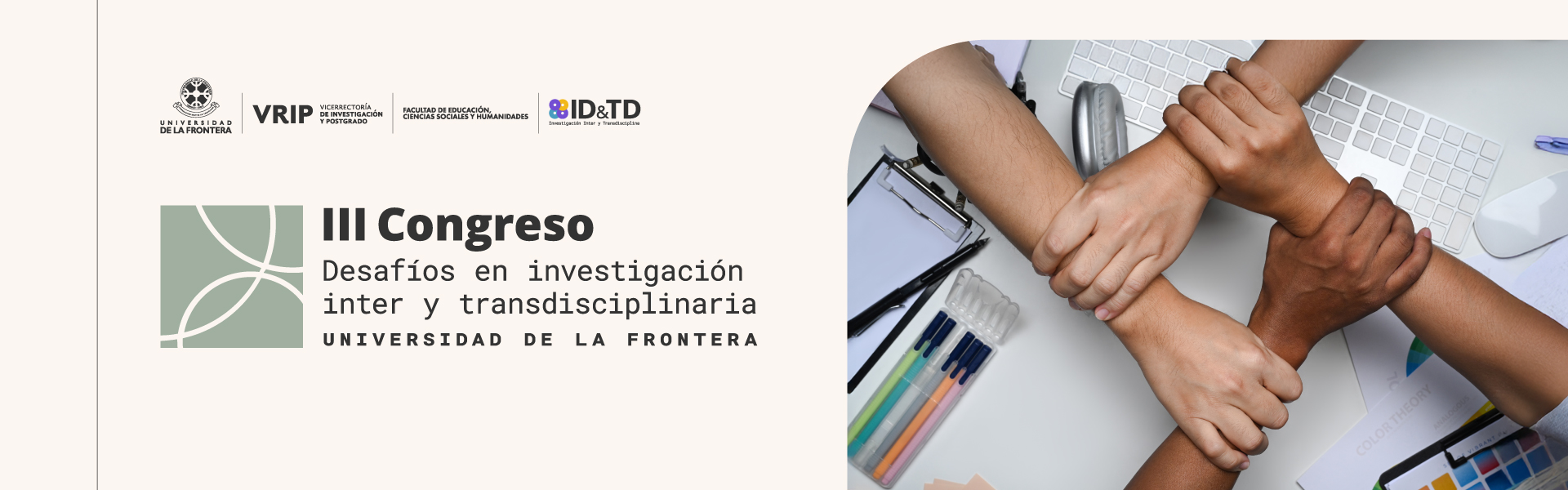 La Vicerrectoría de Investigación y Postgrado junto con la Facultad de Educación, Ciencias Sociales y Humanidades y el Núcleo Científico y Tecnológico de Ciencias Sociales y Humanidades, invitan a la comunidad académica UFRO a participar dell III Congreso “Desafíos en Investigación Inter y Transdisciplinaria” un espacio de encuentro orientado a compartir experiencias, metodologías y proyectos que, desde la multiplicidad de miradas y saberes avanzan hacia nuevas formas de producción de conocimiento inter y transdisciplinarios.